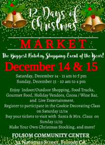 Join us on December 14th and 15th at the Folsom Community Center and make this holiday season one to remember. Whether you’re shopping for loved ones, enjoying festive activities, or simply soaking up the holiday spirit, the 12 Days of Christmas Market has something for everyone. We can’t wait to see you there!