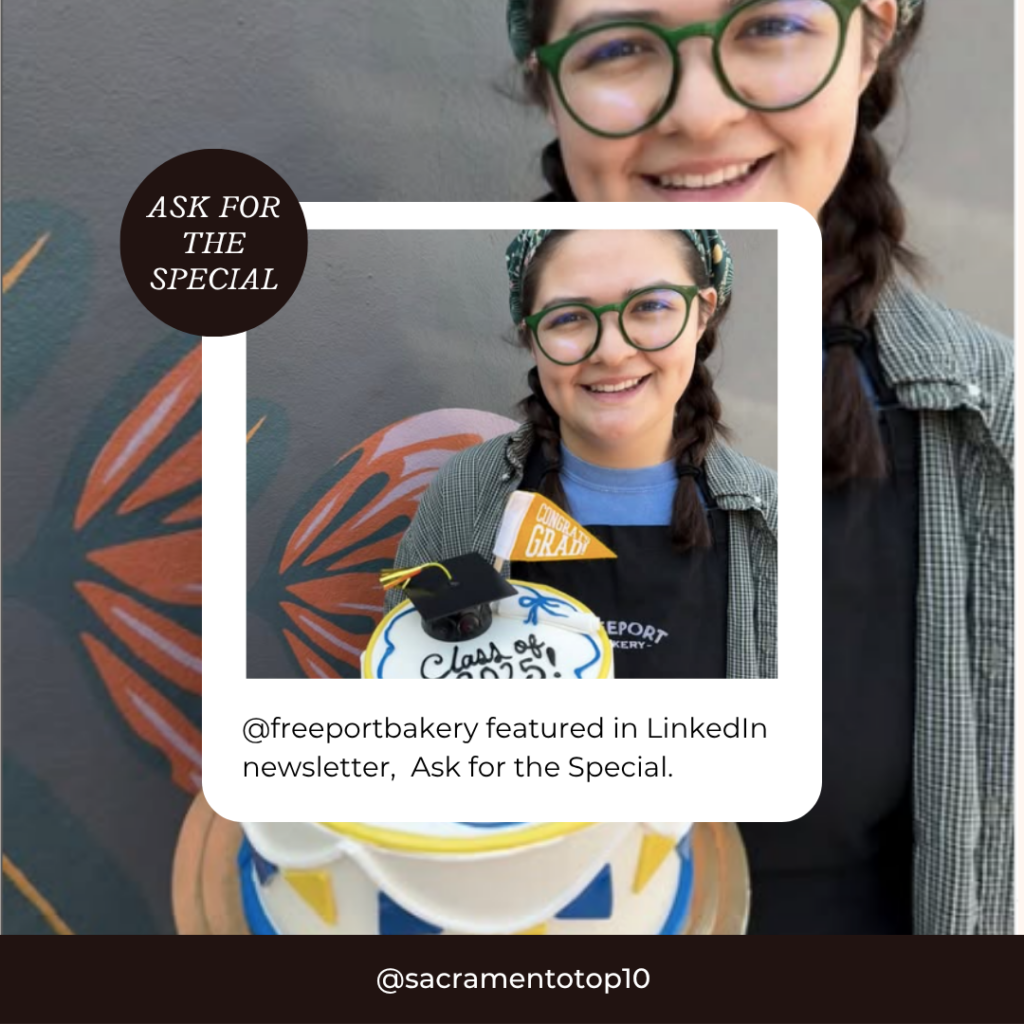 For over 40 years, Freeport Bakery has been a beloved institution, known not just for its stunning cakes but for the love and care baked into every bite. Generations of Sacramentans have trusted Freeport for birthdays, weddings, retirements — and of course, graduations! Their cakes, cupcakes, and cookies aren’t just desserts; they’re part of the family traditions here.