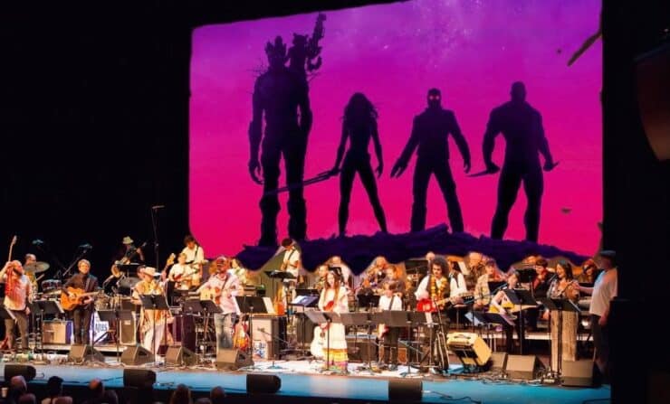 🎥 Movie Magic: Watch scenes from the Guardians of the Galaxy movies projected on the big screen, perfectly synced to the music.