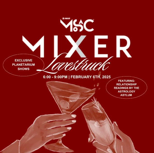 Looking for a unique and exciting way to celebrate love this February? Whether you’re a hopeless romantic, a curious skeptic, or just looking for a fun night out, the Lovestruck Mixer at the SMUD Museum of Science and Curiosity (MoSac) is the perfect place to mix, mingle, and explore the cosmos! 🌌💫