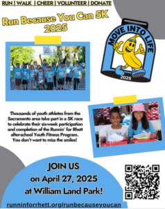 The pinnacle of this mission is the “Run Because You Can” 5K, now in its 14th year, held at William Land Park near Freeport and Sutterville. This event brings together 3,000 youth athletes from the Sacramento area, celebrating the completion of a six-week Youth Fitness Program offered free through Runnin’ for Rhett. Open to the community, the race invites everyone to run, walk, or jog alongside the kids, with registration available online or on race day starting at 7:30 AM. Packet pickup happens race morning near the start line, though Youth Fitness participants receive theirs from their coaches.