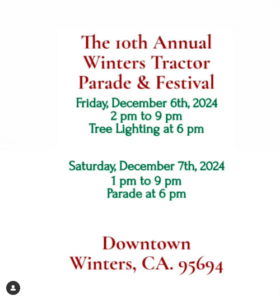 The Winters Tractor Parade & Festival isn’t your average holiday event—it’s a heartwarming community celebration, bringing holiday cheer and thousands of visitors to this charming town. While most people might turn their noses up at a whiff of tractor exhaust, in Winters, it’s a sign that the holidays have arrived!